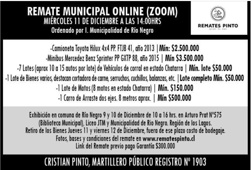 Cristian Pinto Mayorga, Martillero Público Registro Nº 1903