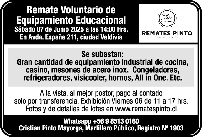 Remate Voluntario Equipamiento Educacional, Presencial.
